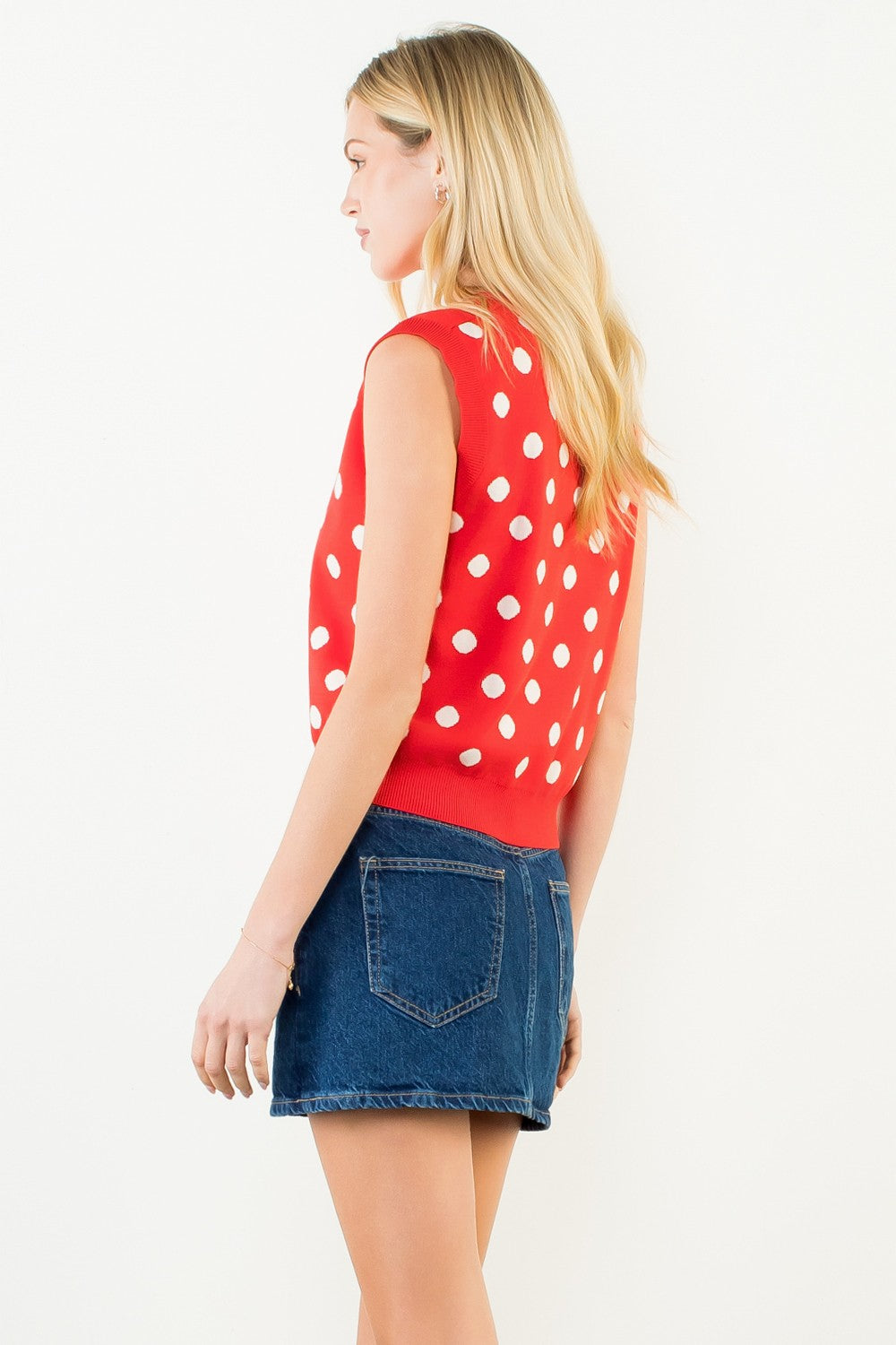 Polka Dot Knitted Top -Red