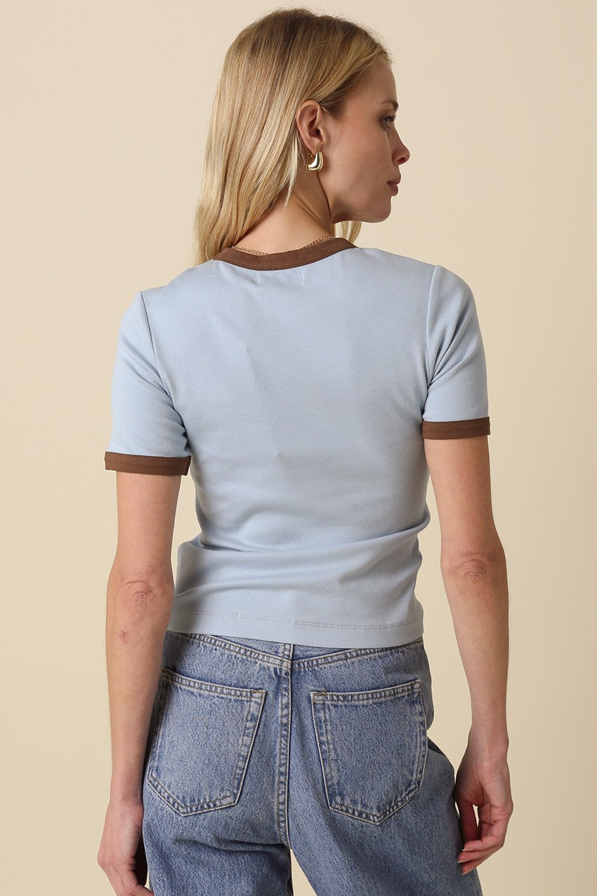 Ivy Contrast Trim Tee - Lt.Bl/Brn