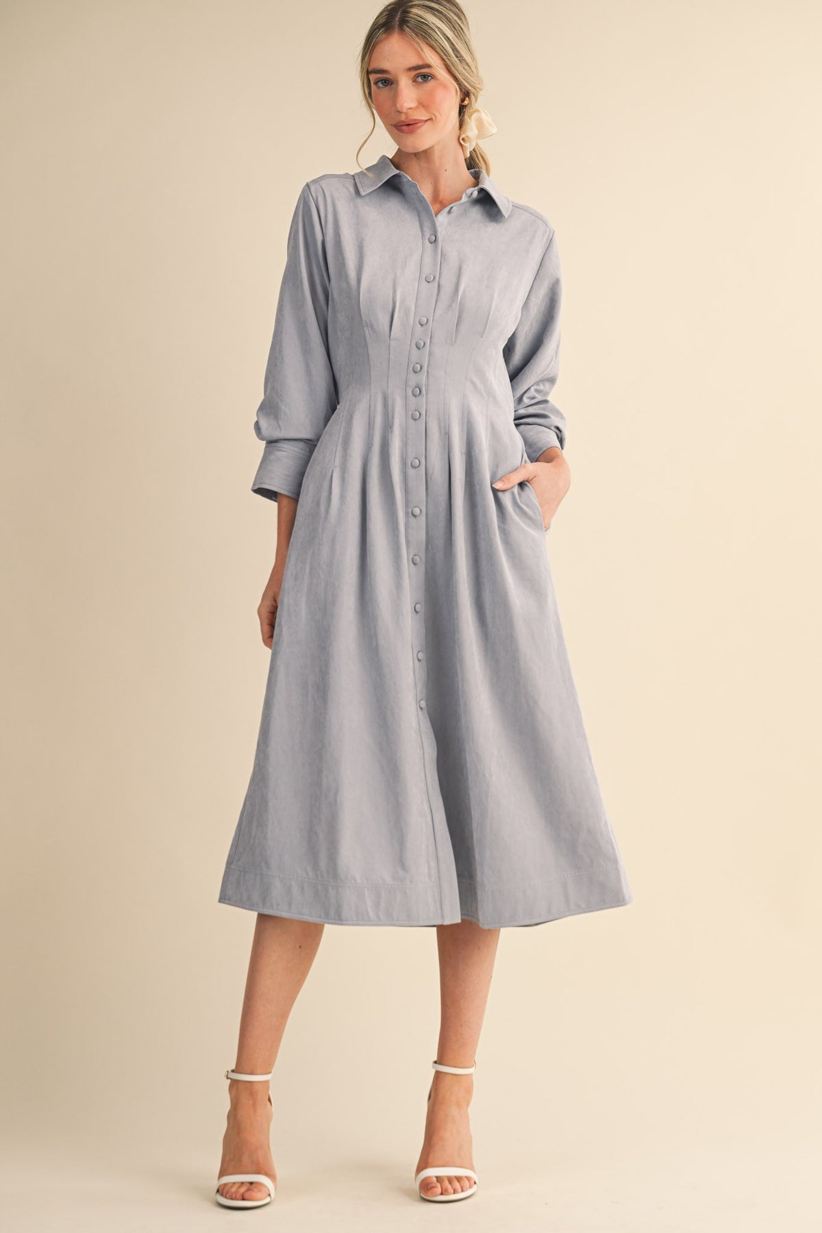 Abbie Pleated Dress- Blue