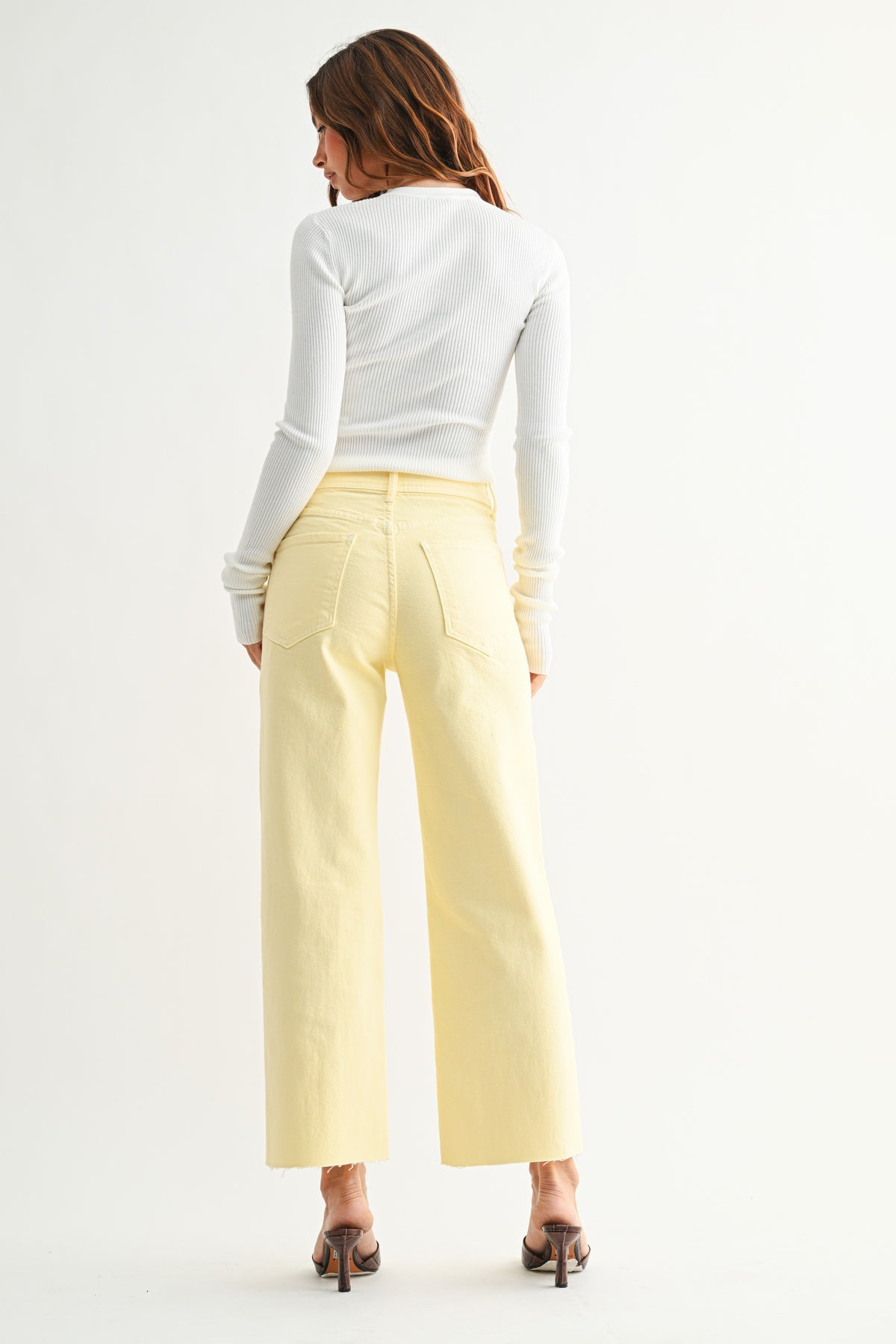 Wide leg jeans are having a moment-stand out in this fresh pastel yellow take on the trend. The Nautical Wide Leg features oversized pockets and a bold silhouette that brings effortless style with a playful twist
