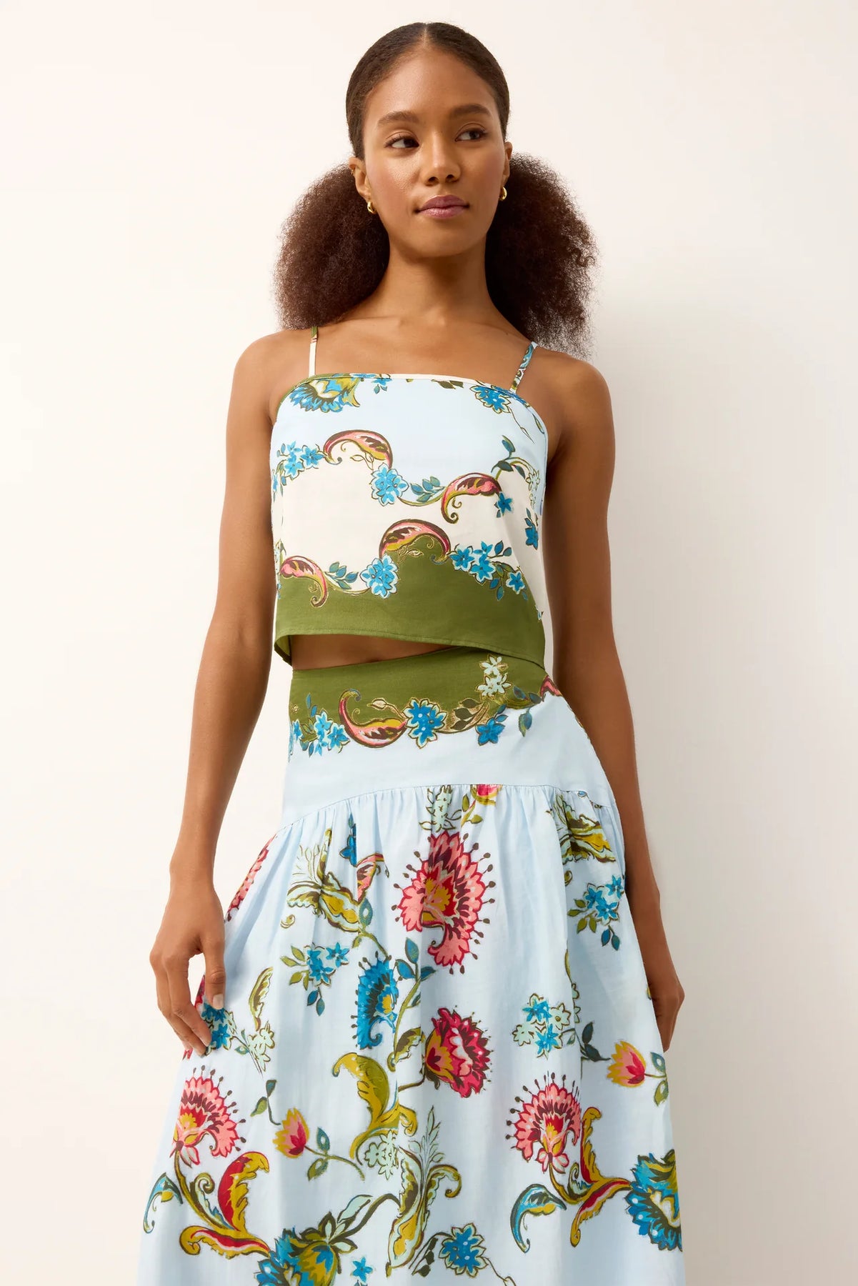 Kyra is a cropped top designed to stand on its own or as part of a set. Adjustable shoulder ties offer functionality, while the clean neckline and tailored fit keep the look polished. Fully lined for a smooth silhouette, Kyra is effortless to wear and easy to style. Pair it with the matching Vicki Skirt for a print-on-print moment, or team it with tailored shorts for a refined warm-weather outfit.