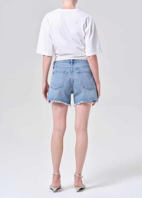 Looks Like: Light vintage indigo denim short